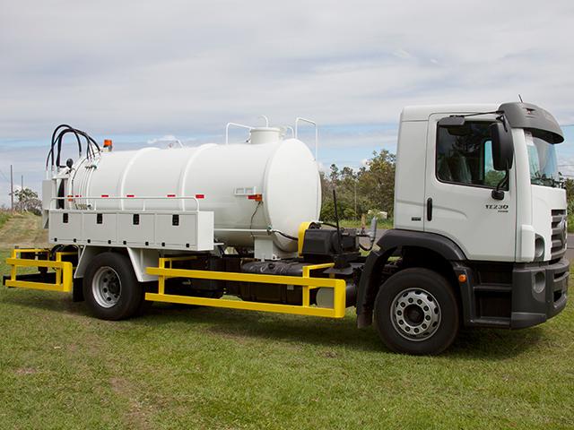 Bomba é acionada através de Caixa de Transferência Integral acoplada ao eixo cardam principal do caminhão, entre a caixa de câmbio e o diferencial.